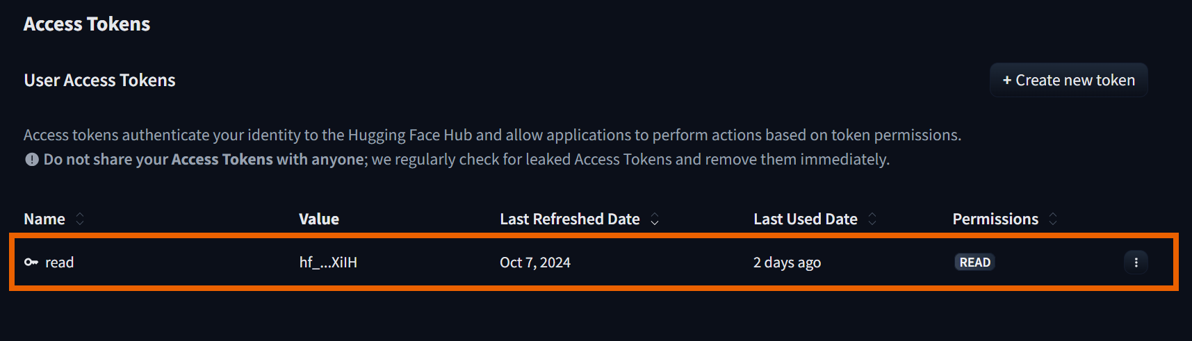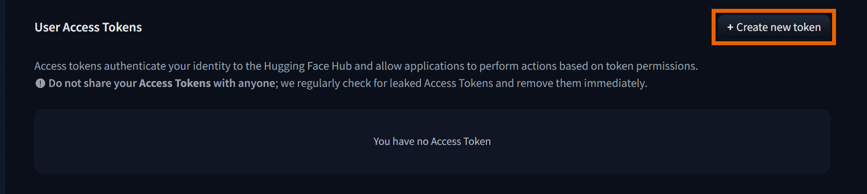 1. Go to the Hugging Face Access Tokens page. (https://huggingface.co/settings/tokens)