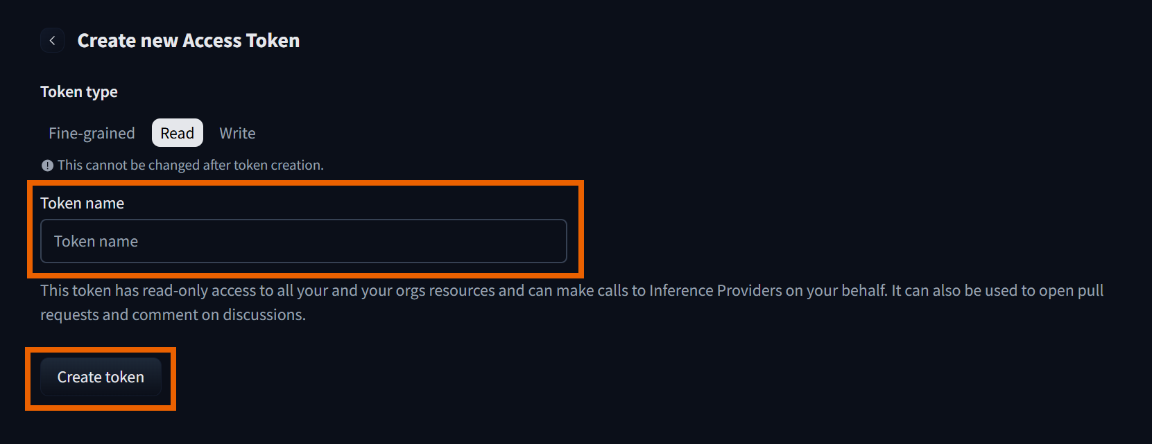 3. Select Read, enter a token name, and then click Create token.