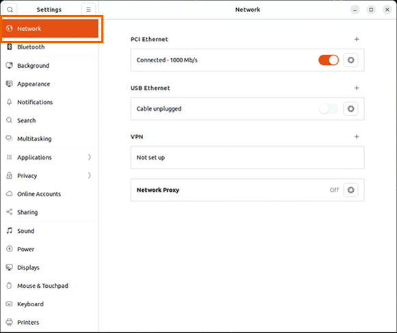 Click on "Network," then click the gear icon to enter your network card's settings.
