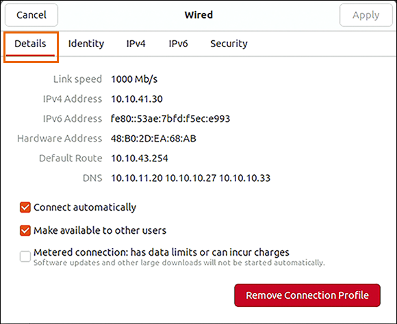 Click on the Details tab to view the obtained IP. If you see an assigned IP address (like 192.168.x.x or 10.10.x.x), it means you've successfully obtained a valid IP.