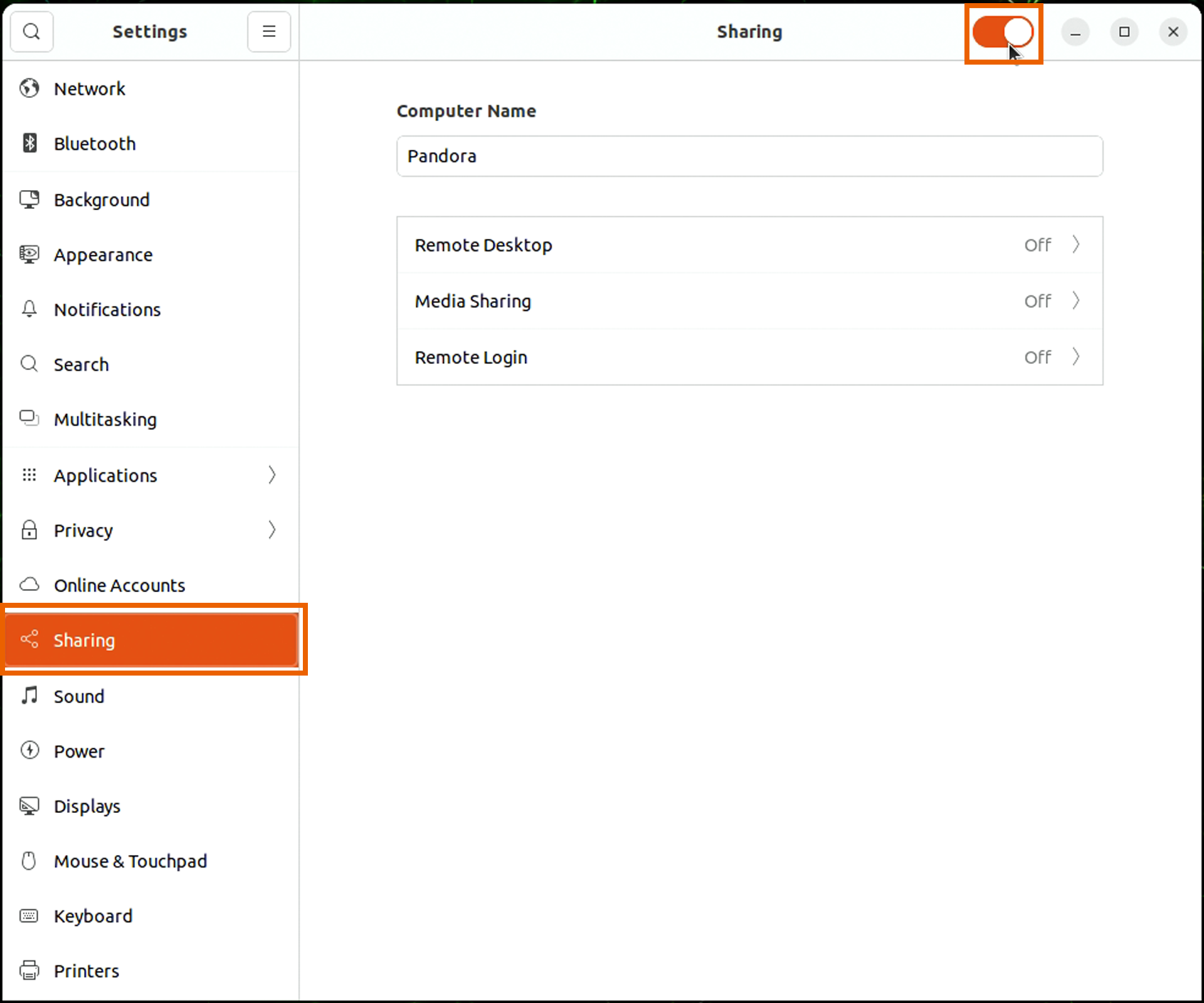 1. Open Settings. Then go to the Sharing tab and turn on Sharing.