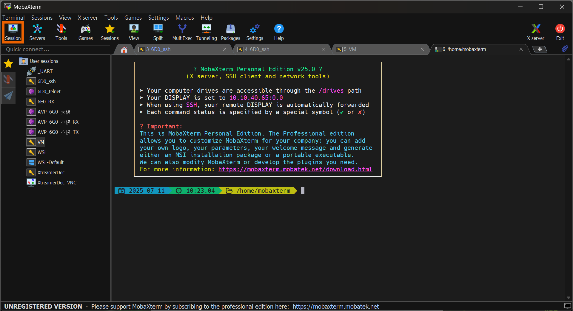 1. Click Session to add a new SSH session.