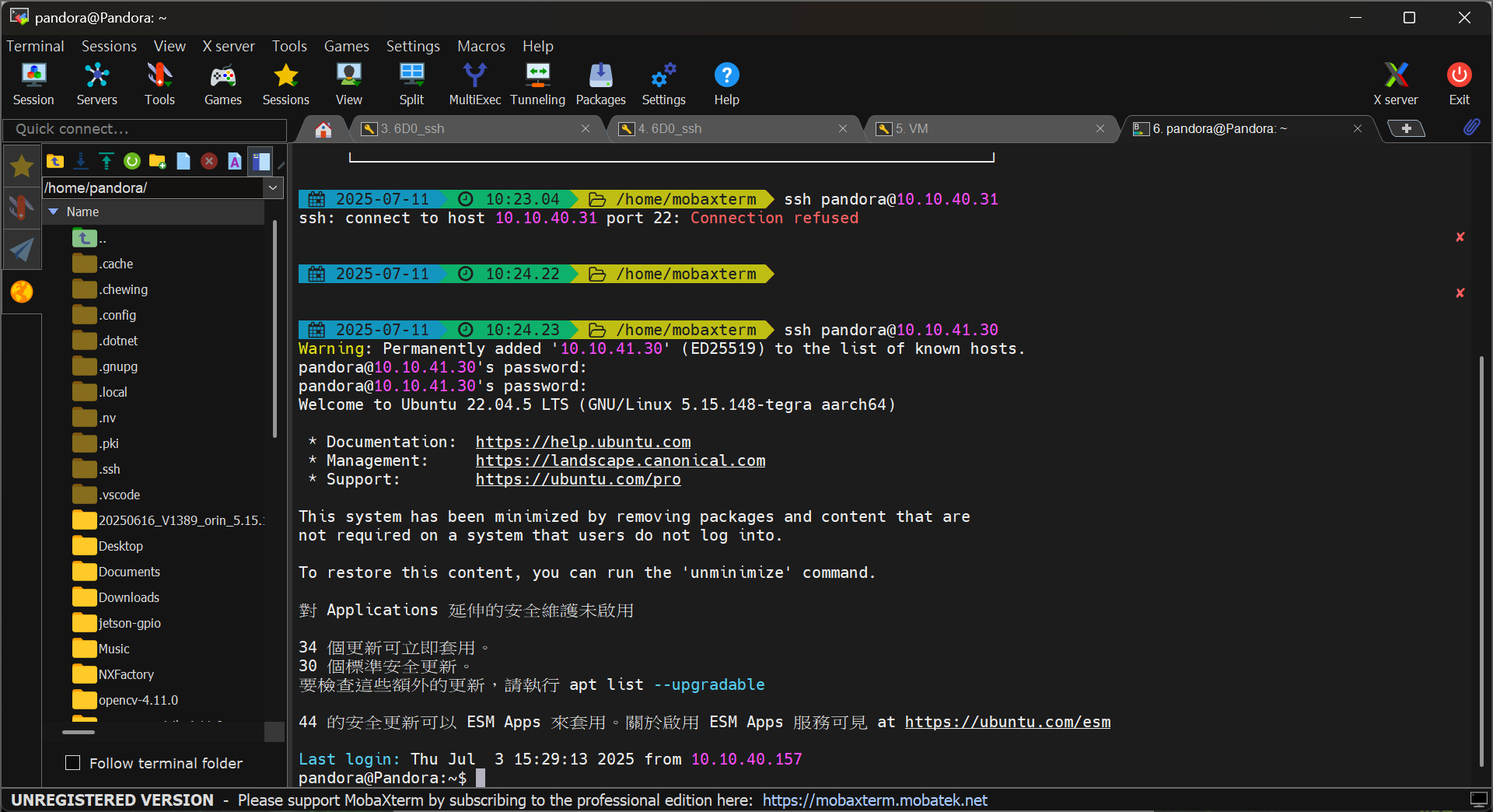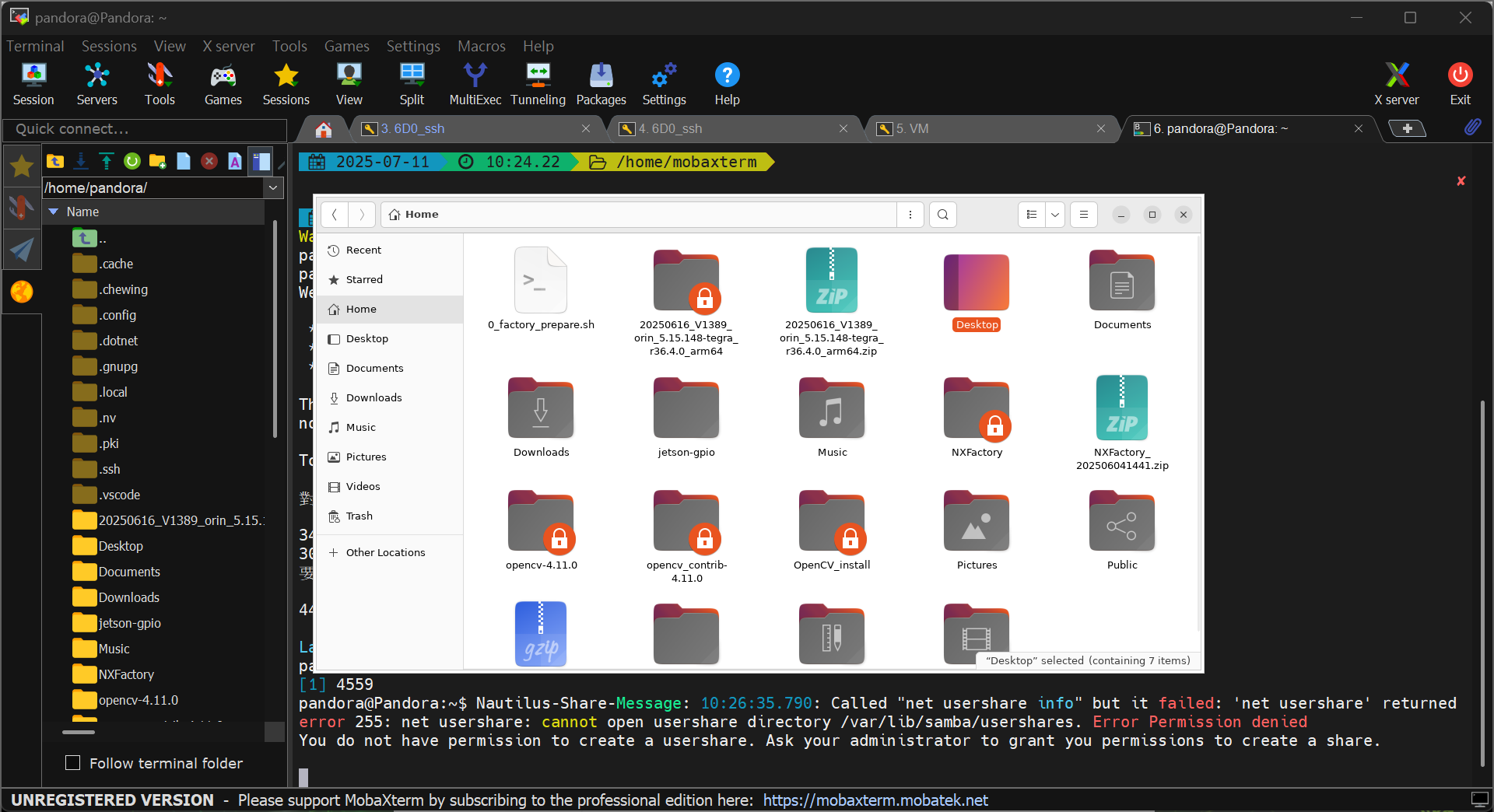 4. Some applications support X11 Forwarding. This allows you to display graphical interfaces from your remote Pandora on your local machine after establishing an SSH connection. For example, you can launch a remote file explorer window using nautilus.