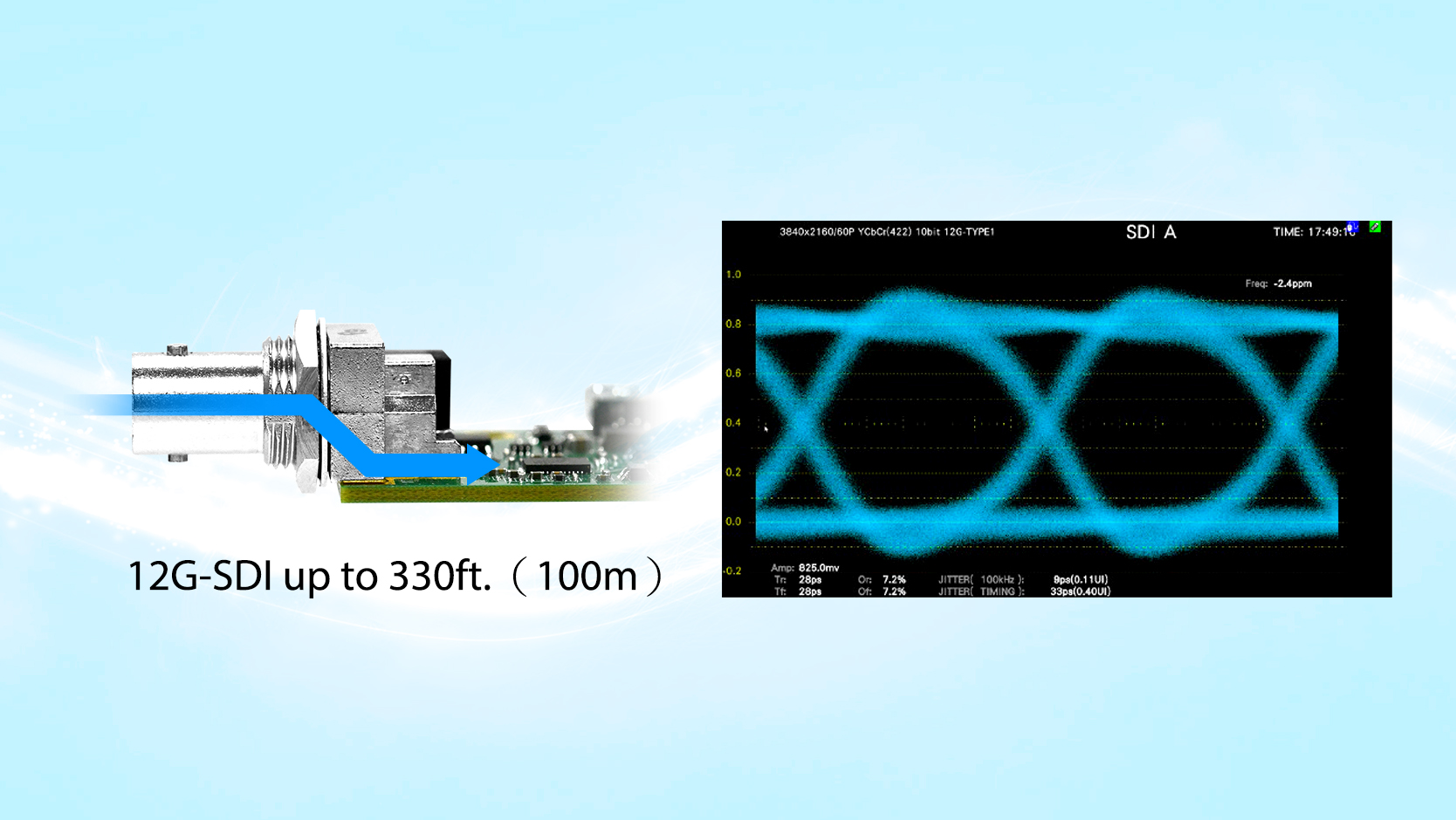 YUAN's 4K SDI products are designed with Hirose high contact durable connector that maintains the highest performance in vibration environments, and suitable for up to 100m powertrain trasmit connection.