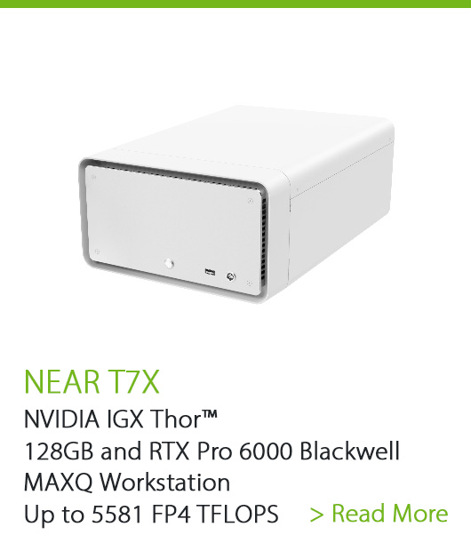 SmartVDO Near is the ultimate desktop workstation for artificial intelligence and graphics performance. This innovative family of products uses NVIDIA RTX™ Pro 6000 Blackwell MAXQ Workstation and NVIDIA RTX™ 6000 Ada to deliver the features and performance needed to meet the challenges of today's AI-driven workflows.