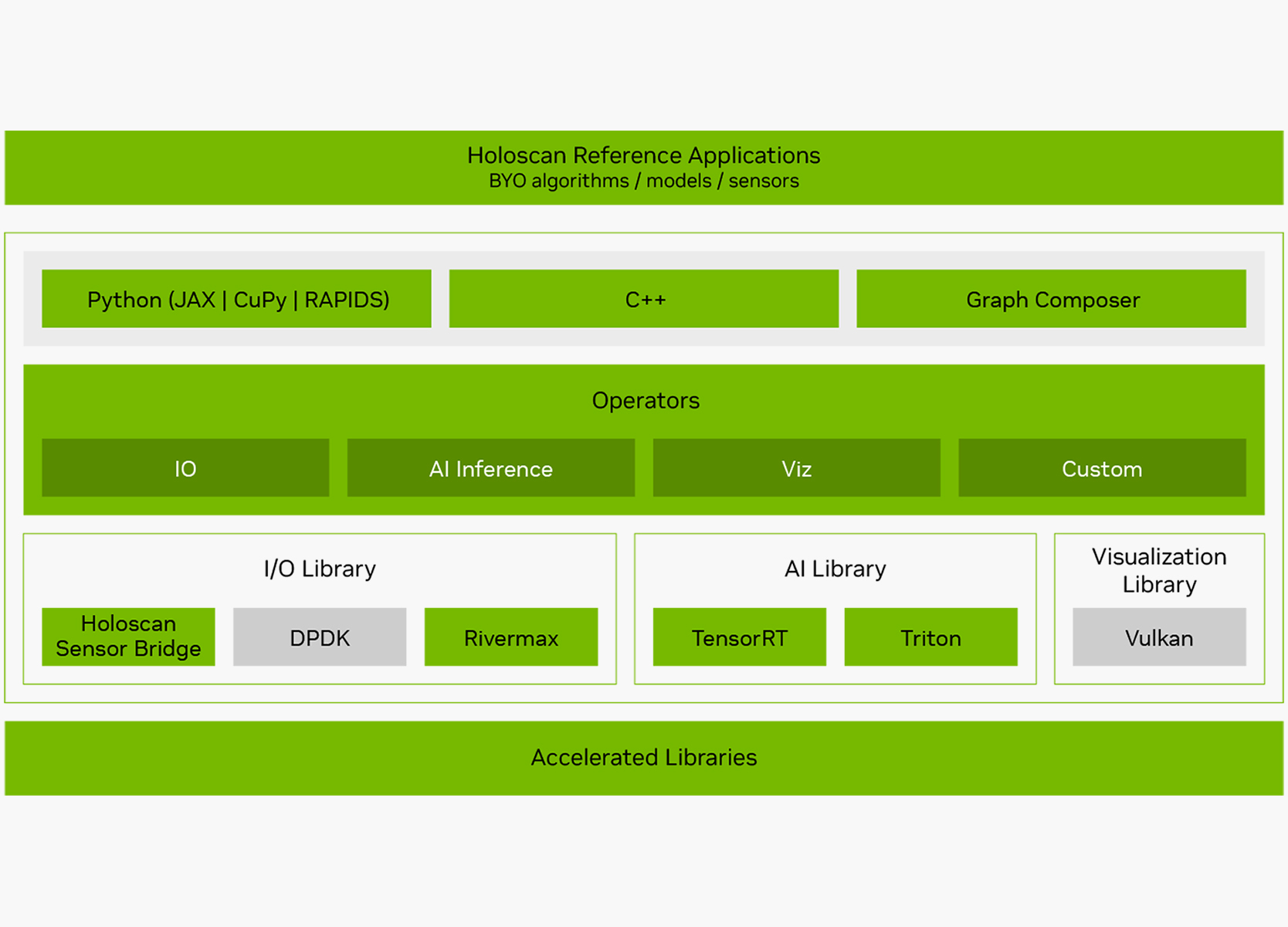 Fully compatible with the NVIDIA Holoscan SDK. Developers can utilize standardized APIs to integrate image processing and AI modules, accelerating multi-sensor applications and algorithm deployment while reducing system development and validation cycles.