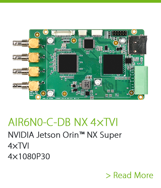 AIR6N0 系統運用 NVIDIA 的 Jetson Orin™ 系列,整合了Jetson Orin™ NX Super 嵌入式模組,提供 157 TOPS 的人工智能影像處理計算能力。其創新的雙載板設計,重塑了市面上一般載板的設計布局,可滿足有極致輕薄需求或多種擴充用途的客戶,同時 YUAN 全系列工業用影像擷取卡,均可與 NVIDIA Jetson Orin™ 完美搭配。